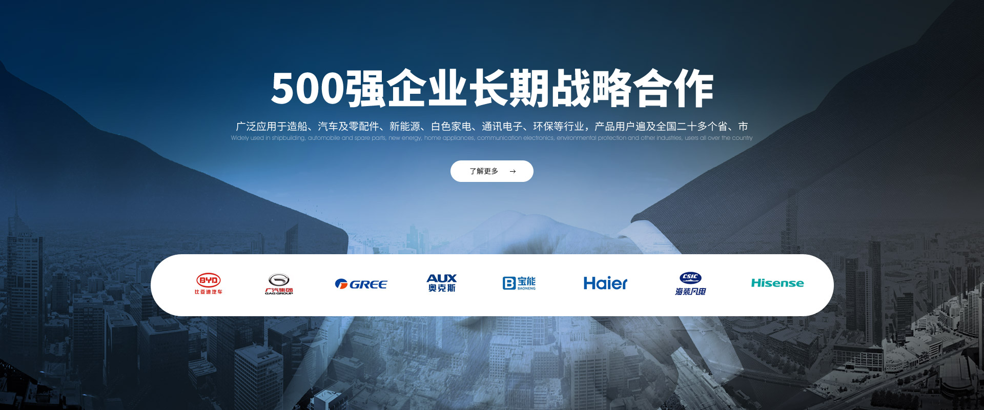 戰略合作伙伴廣泛應用于造船、汽車及零配件、新能源、白色家電、通訊電子、環保等行業,產品用戶遍及全國二十多個省、市